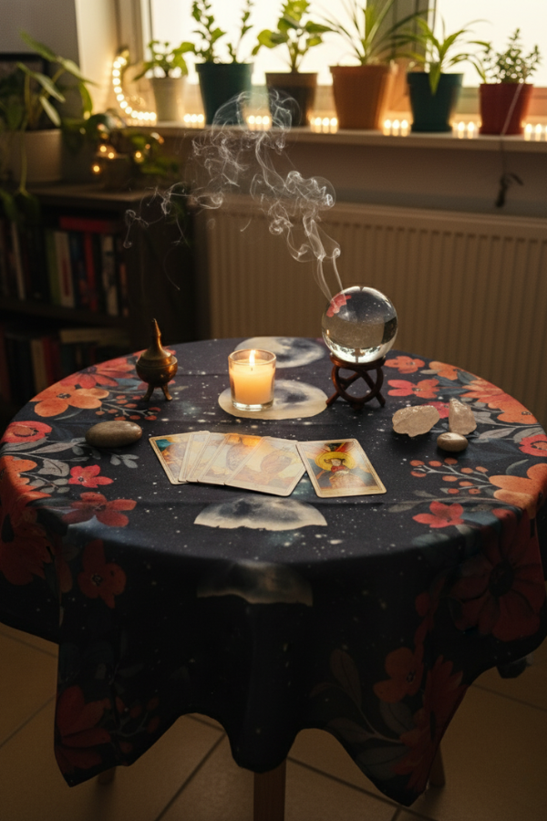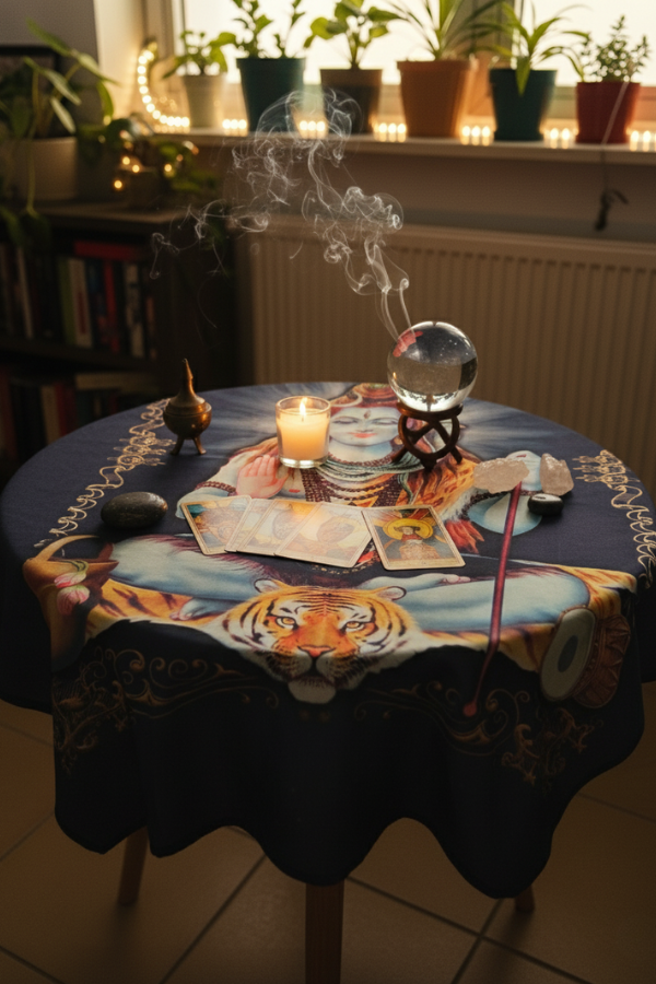 Cada tapiz ofrece una superficie suave y resistente, ideal para disponer cartas, cristales, sahumerios, velas o elementos de meditación sin dañar la superficie y manteniendo la armonía visual.